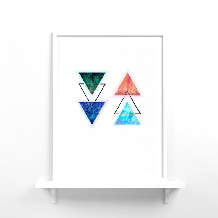 Cleverly incorporating symbols for the elements earth, water, fire and air, this print centres us back in nature and creation.
