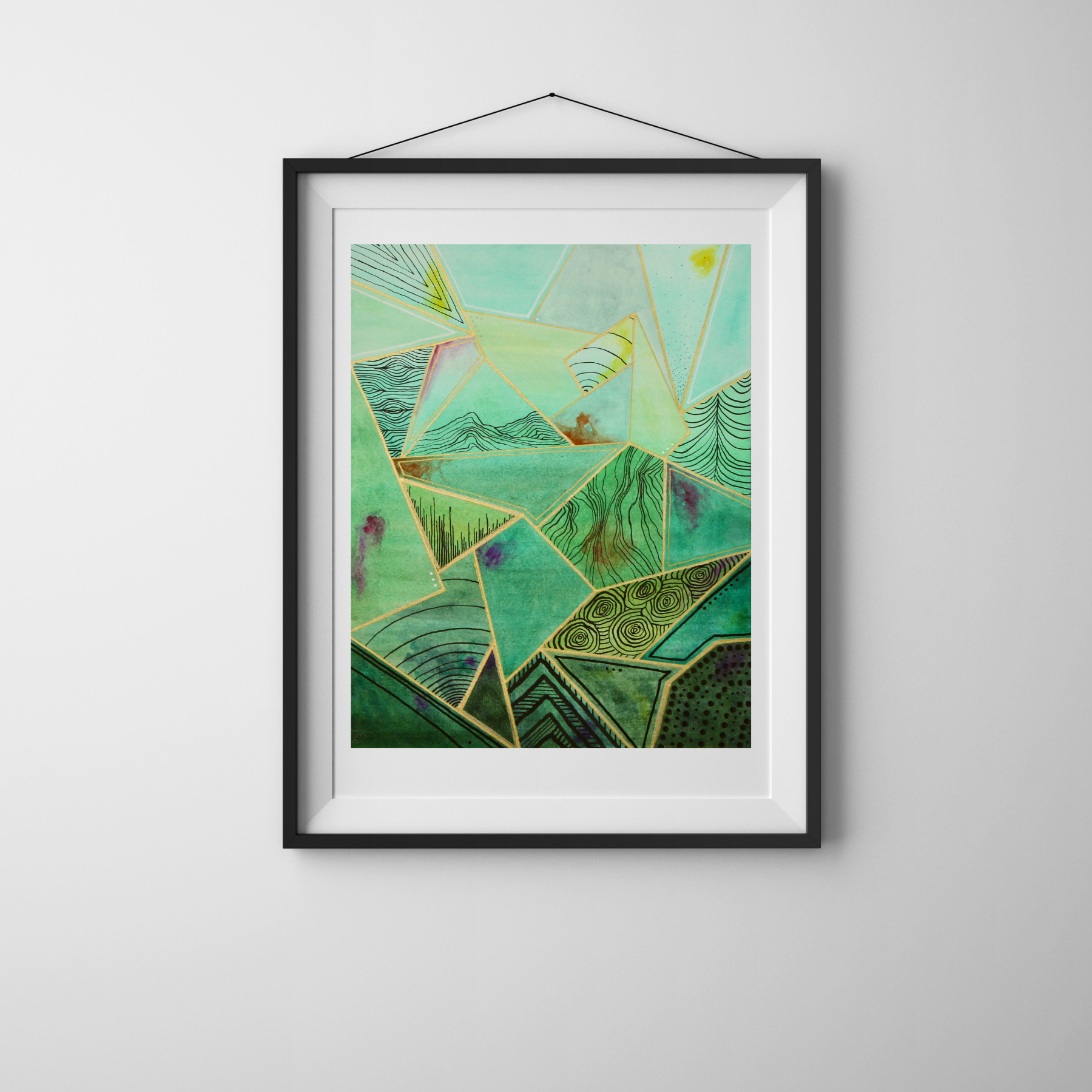 The first work of the 'Progression' collection, the original art is a mixed media expression on bright cartridge paper, with acrylic and ink built upon layers on watercolour.