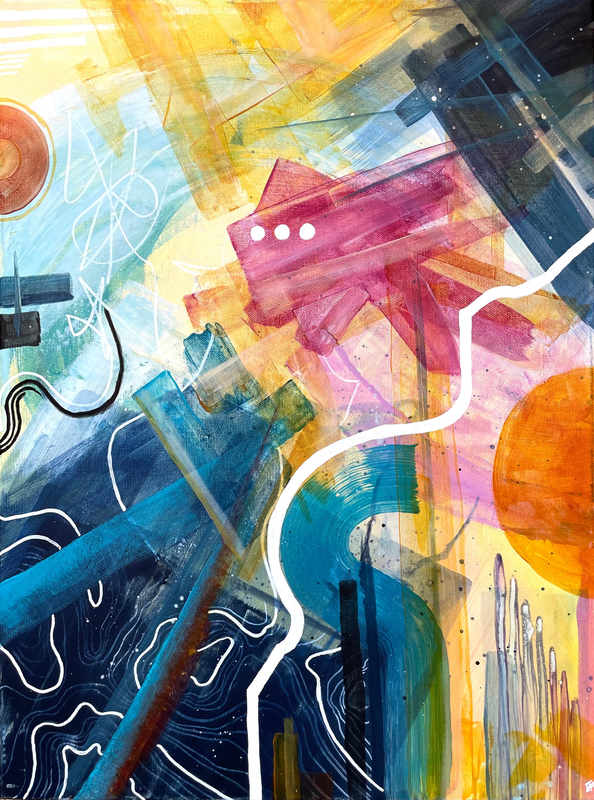 Stunning acrylic on canvas composed to this powerful sentiment by Morgan Harper Nichols. Beautiful blues, yellows and pinks harmonising together, surrounded by layers of detail and hidden intricacies.